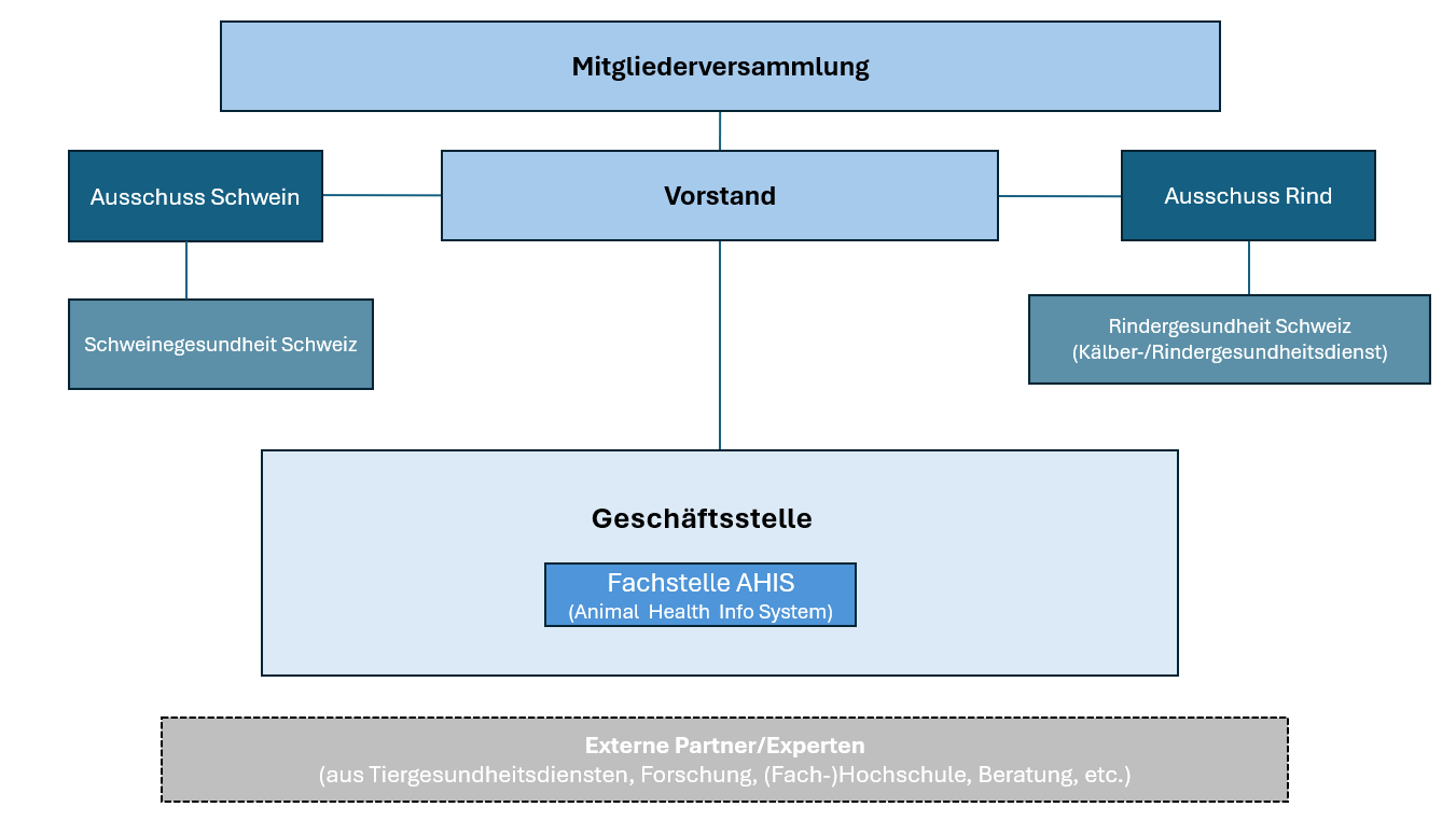 Unser Organigramm bietet Ihnen einen Überblick über unsere Struktur und zeigt, wie wir organisiert sind, um die Gesundheit der Nutztiere kontinuierlich zu fördern.